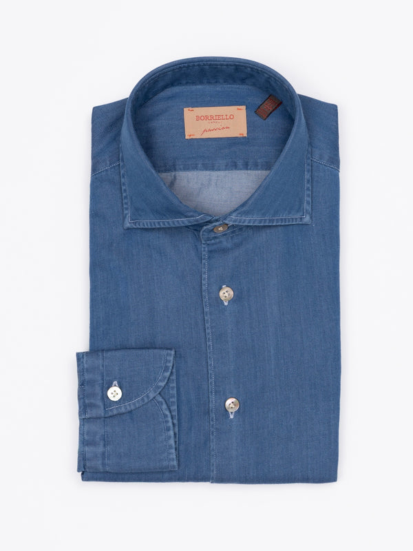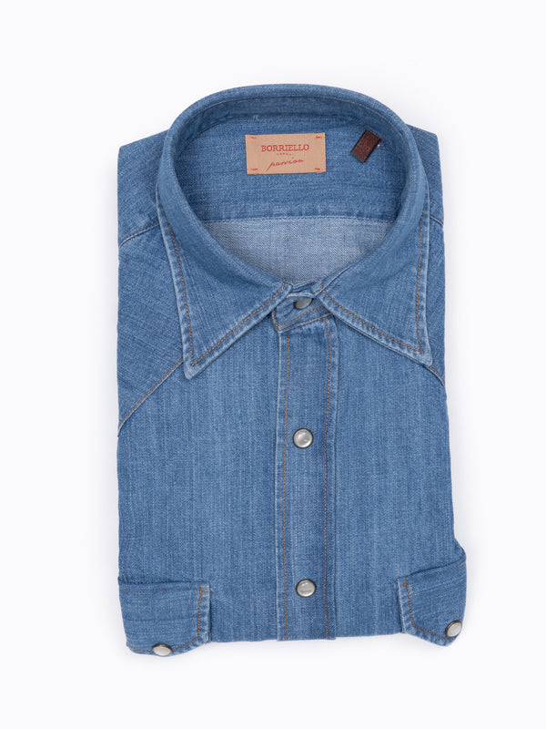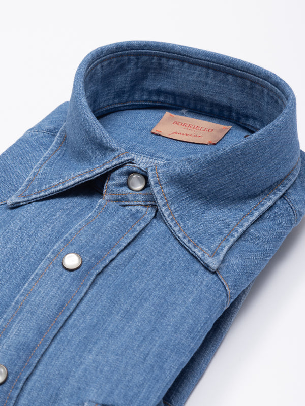 Borriello Napoli - Selvedge Denim Mid Blue Western Shirt