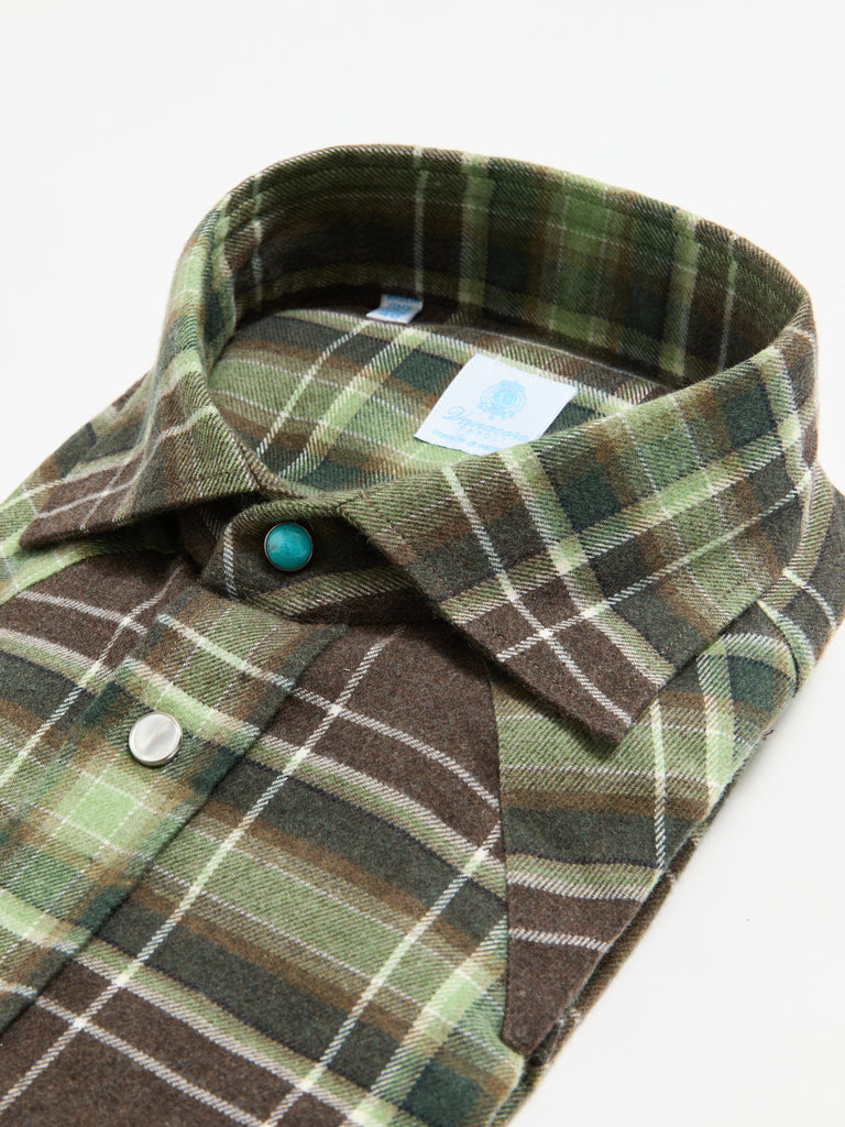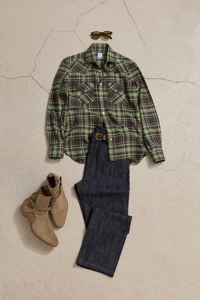 The Texas model by Vanacore Napoli is a handcrafted shirt made in Naples from premium fabrics. Meticulous details such as snap mother of pearl buttons and refined cuffs, and a diagonal shoulder patch inspired by Western style, the Arizona blends tradition and modernity in a versatile and distinctive garment.