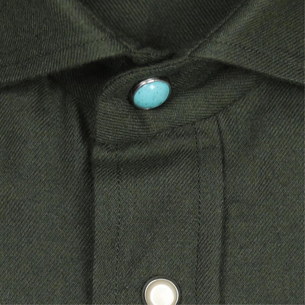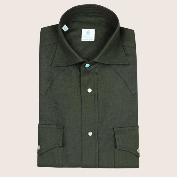 Vanacore Napoli - Melange Cotton Green Western Shirt